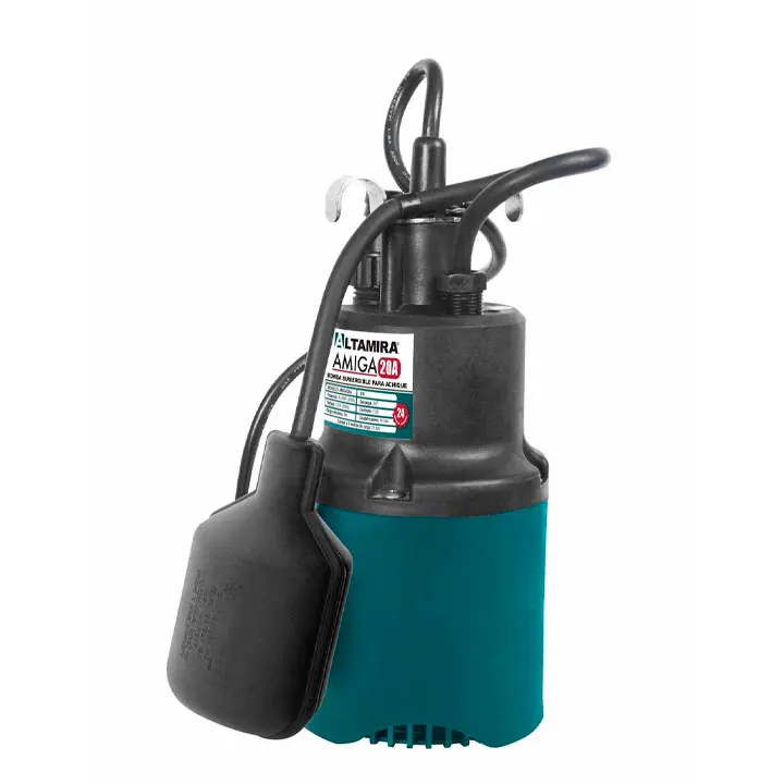 La Motobomba sumergible para achique Altamira AMIGA20A por su diseño compacto brinda un fácil manejo, fabricada totalmente en materiales plásticos, es ideal para aplicaciones domésticas como desagüe de espacios inundados, fuentes decorativas y cascadas; Su motor cerrado a baño de aceite con protección térmica incorporada ofrece un servicio continuo.
