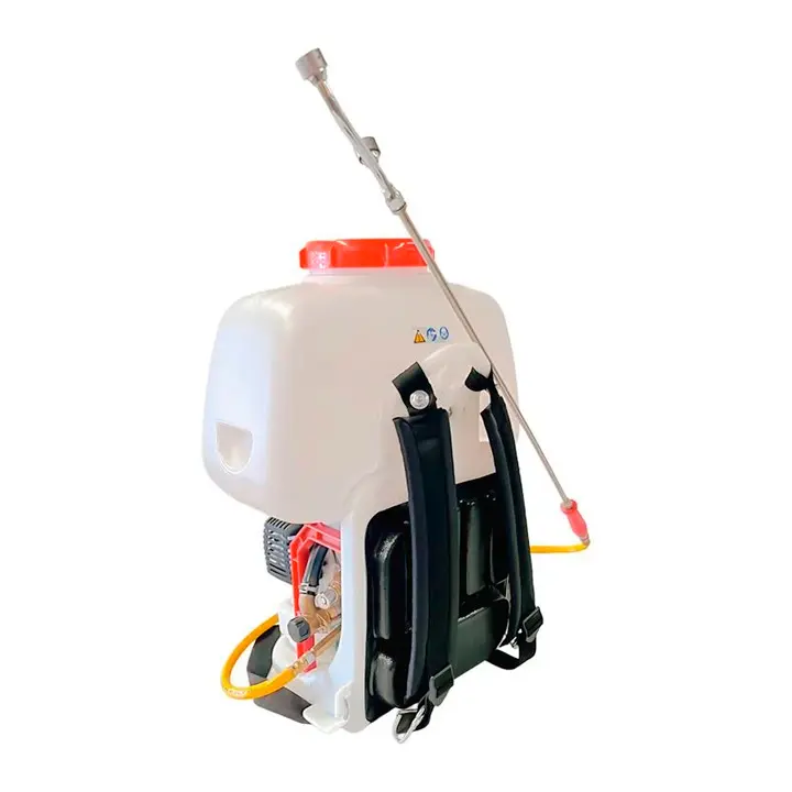 Esta Fumigadora cuenta con un tanque semitransparente de 25 litros (6.6 galones), lo que facilita el monitoreo del nivel de líquido sin interrupciones; además, incorpora un sistema de reducción de vibraciones para minimizar la fatiga del operador durante largas jornadas de trabajo, su bomba de pistón de doble acción asegura una presurización rápida y eficaz, manteniendo un flujo constante.