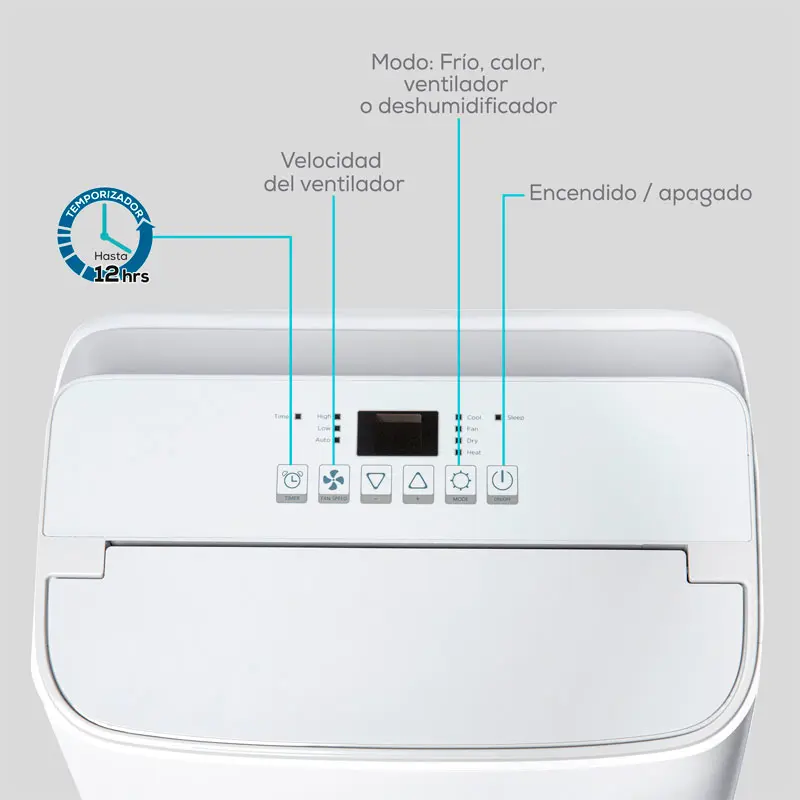 El Aire Acondicionado Portátil Evans AA-POR-1.0TD ofrece una solución versátil y eficiente para climatizar espacios sin necesidad de instalaciones complicadas, con su capacidad de 12,000 BTU/h, proporciona un enfriamiento potente y uniforme, ideal para habitaciones de 18 a 26 m², su diseño compacto y elegante permite colocarlo en cualquier lugar sin afectar la estética del ambiente.