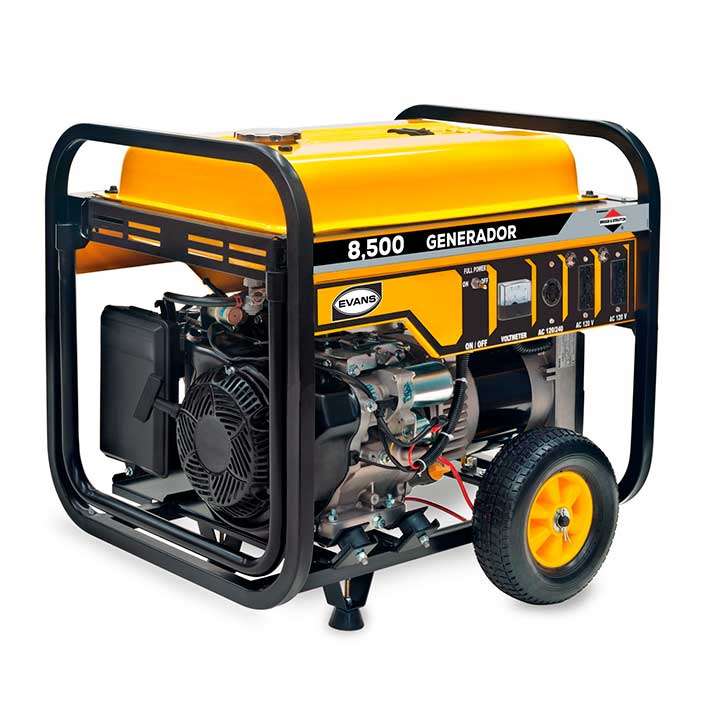 Generador Monofásico de 8 500 W pico con motor a gasolina Briggs & Stratton de 13.5 HP, portátil, totalmente ensamblado e interruptor para máxima potencia. Ideal para construcción ligera y energía de respaldo en emergencias