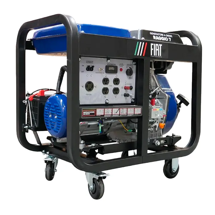 El Generador Fiat Diesel RAGGIO7 es la solución confiable para proporcionar energía eléctrica en lugares donde no se cuenta con acceso a la red convencional, con un motor diésel de 13 HP y una cilindrada de 498 cc, combina potencia y eficiencia, siendo ideal para aplicaciones tanto residenciales como comerciales.