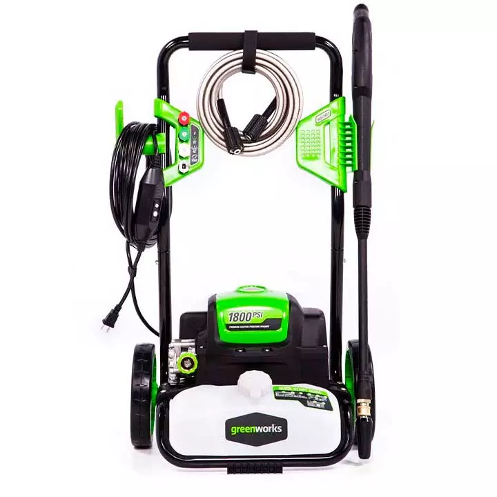 Esta Lavadora a presión eléctrica GPW1800 Greenworks , es ideal para los trabajos diarios de limpieza de alta presión en la casa. Ya sea el auto, casa, terraza o la entrada de tu casa, es perfecta para una mejor limpieza y un trabajo muy eficaz.