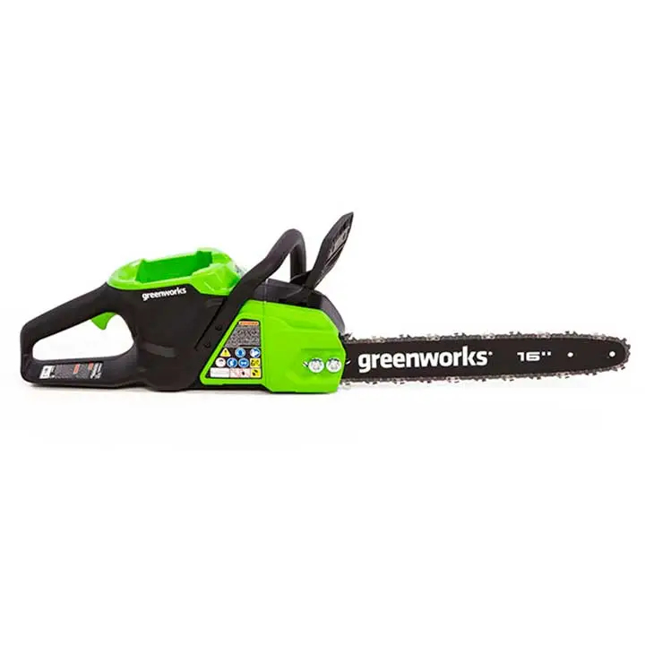 La Electrosierra GreenWorks 48CS16 de 16 pulgadas está diseñada para enfrentar trabajos pesados y largas jornadas con total confianza. Su motor sin escobillas de 48V ofrece la potencia equivalente a un motor a gasolina de 45 cc, sin emisiones ni mantenimiento complejo, con una velocidad de corte de 20 m/s y cadena de bajo calibre, garantiza eficiencia incluso en madera gruesa o densa.