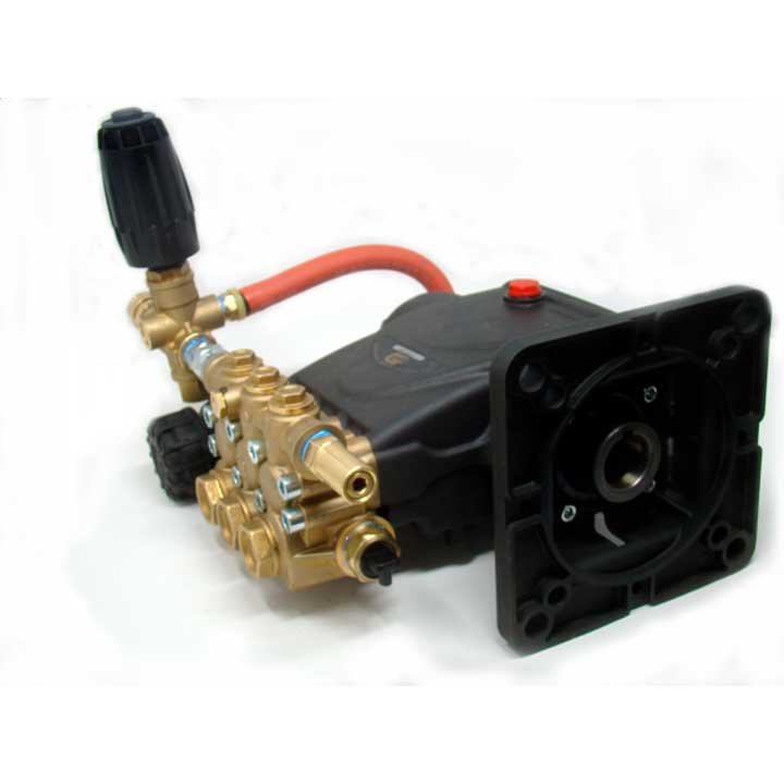 Bomba de pistones cerámicos 18 mm de diámetro para motor eléctrico con cabezal de latón y flecha Hueca de 1-1/8″ para acoplamiento directo; para usarse en Hidrolavadora Industrial italiana de uso rudo.
