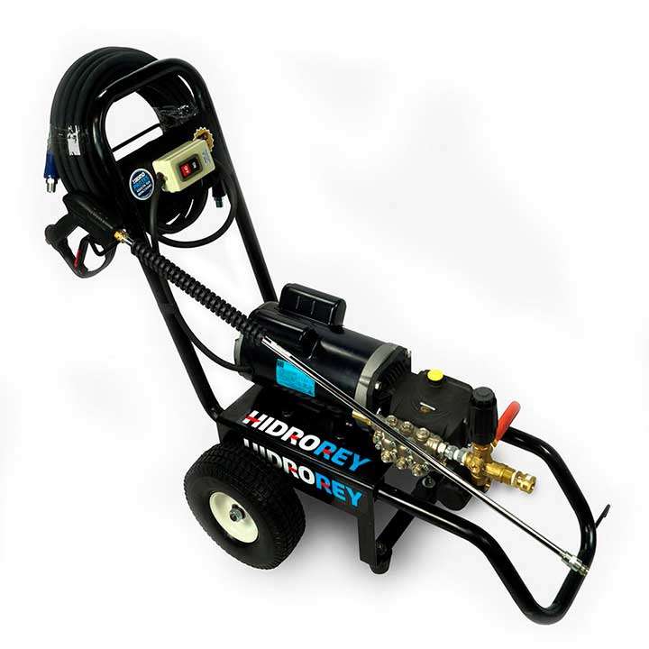 Hidrolavadora Hidrorey H2EM1500A de chasis con ruedas para fácil transportación. Cuenta con motor eléctrico monofásico de 2hp y bomba General Pump Italyna Evolution1 de cabezal niquelado y pistones cerámicos que ofrece una presión de 1,500psi. Es de uso rudo, ideal para la industria. Hidrorey es la única marca que incluye válvula de seguridad o de alivio y válvula de protección térmica para evitar sobrecalentamiento y así proteger el equipo y al operador. Su manguera cuenta con terminal giratoria para no requerir de swivel giratorio destorcedor adicional. Incluye Bomba General Pump Italyna Evolution1, Conexiones rápidas entre bypass y manguera, 10m de manguera, Lanza de 24”, Gatillo Italyno de 5,000psi, Boquilla industrial de acero inoxidable, Abanico de 25°, Swtich botonera, Cable 3×10, Filtro Italyno con malla 5 mesh, Válvula Bypass Italyna VRT3, Chasis de acero con pintura horneada y Ruedas antiponchaduras.