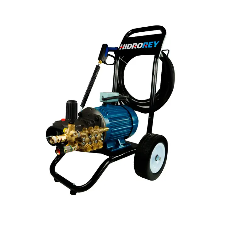 La Hidrolavadora Hidrorey H5ET2500 es una solución industrial diseñada para trabajo rudo, equipada con un motor WEG trifásico de 5 HP que asegura una alta eficiencia y durabilidad. Su estructura de hierro fundido brinda máxima resistencia, ideal para soportar condiciones de uso intensivo sin comprometer su desempeño, además, funciona a bajas revoluciones de 1750 RPM, lo que reduce el desgaste y prolonga la vida útil del equipo.