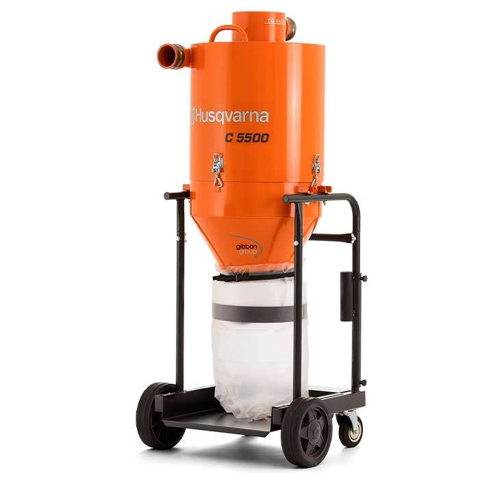 El Aspiradora Husqvarna C-5500 es un pre-separador industrial de alto rendimiento, diseñado especialmente para trabajos intensivos donde se genera gran cantidad de polvo, funciona como complemento ideal para extractores de polvo industriales, mejorando considerablemente la eficiencia del sistema general al interceptar hasta el 90 % del material aspirado antes de llegar al extractor.