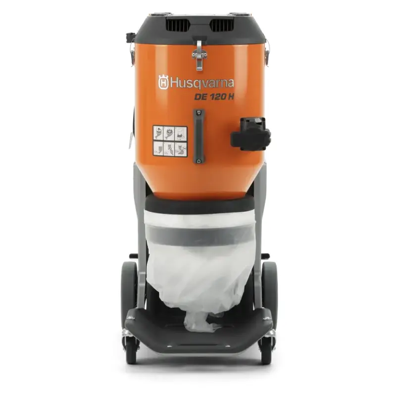 El Colector de polvo Husqvarna DE 120 H combina máxima eficiencia con un diseño compacto y portátil, ideal para entornos de trabajo exigentes, diseñado para trabajar junto a herramientas eléctricas de mano, este equipo garantiza una recolección potente y constante del polvo, gracias a su sistema inteligente e-flow que ajusta automáticamente el flujo de aire.