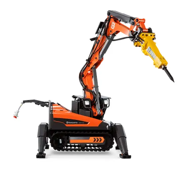 Diseñado para aplicaciones exigentes en construcción e industria, este robot puede operar con diversos accesorios como martillos, trituradoras y cizallas, ofrece control remoto de alta calidad, monitoreo en tiempo real y un sistema hidráulico eficiente con 52 l/min de caudal y presión máxima de 250 bar, estas características lo hacen ideal para tareas complejas con un alto grado de seguridad y precisión.