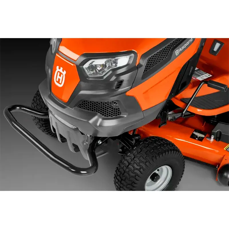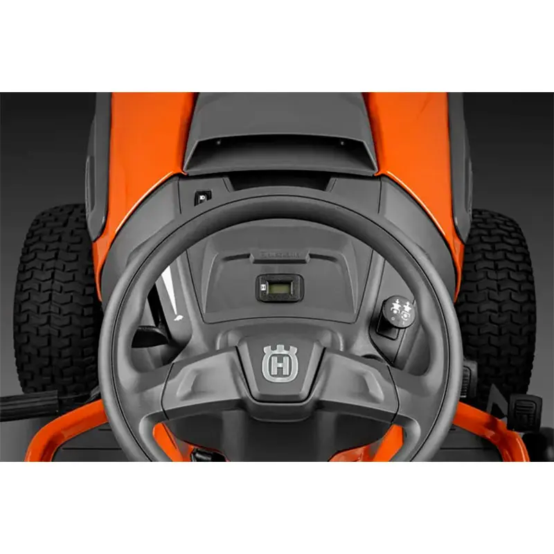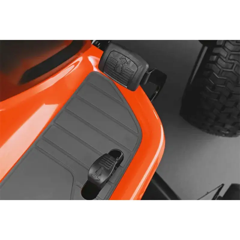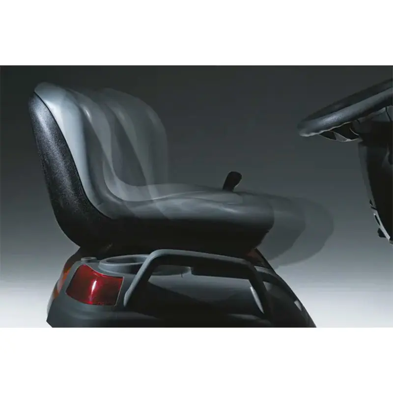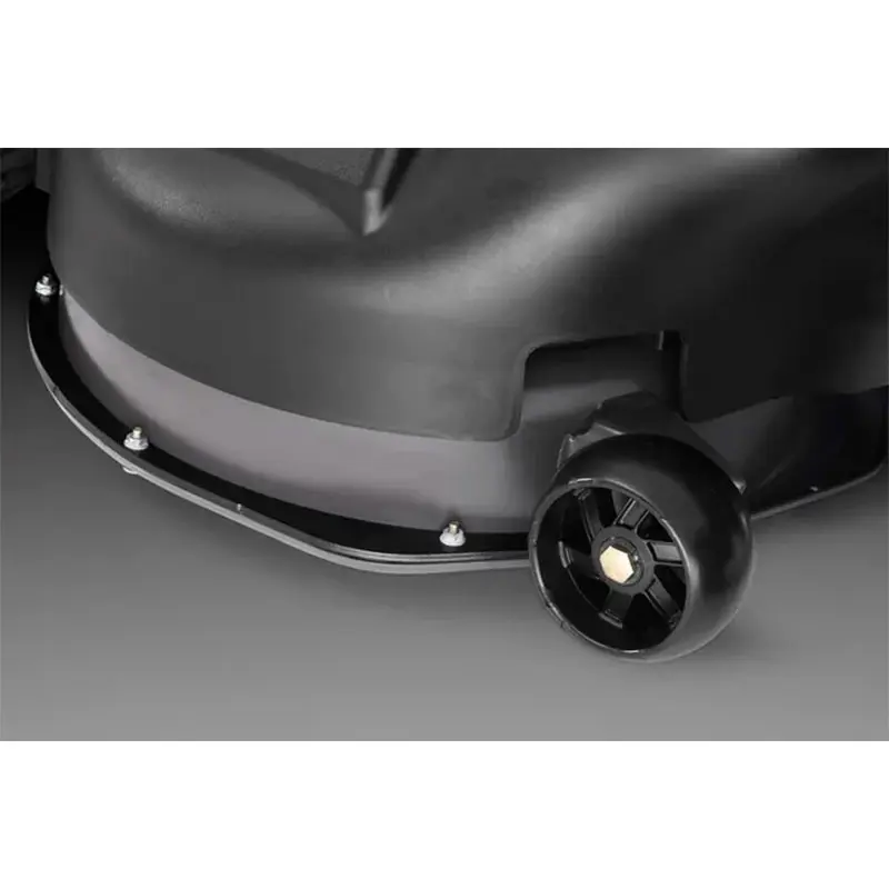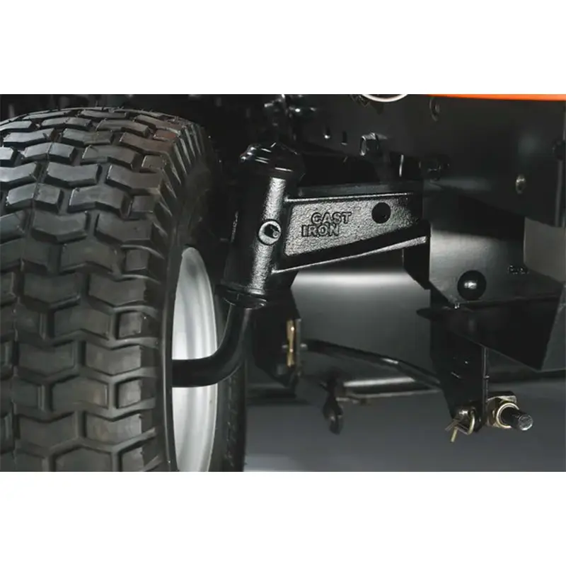 Cuenta con una campana de acero reforzada que protege sus componentes y prolonga su vida útil, además de llantas antideslizantes que brindan una tracción superior incluso en superficies húmedas o irregulares, con un asiento ajustable y volante de gran tamaño proporcionan comodidad y maniobrabilidad, permitiendo largas jornadas de trabajo sin esfuerzo, la plataforma de corte de 122 cm y su ajuste de altura garantizan un acabado uniforme en cada pasada.
