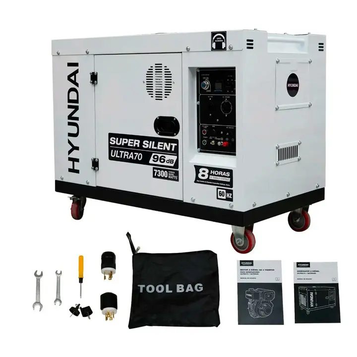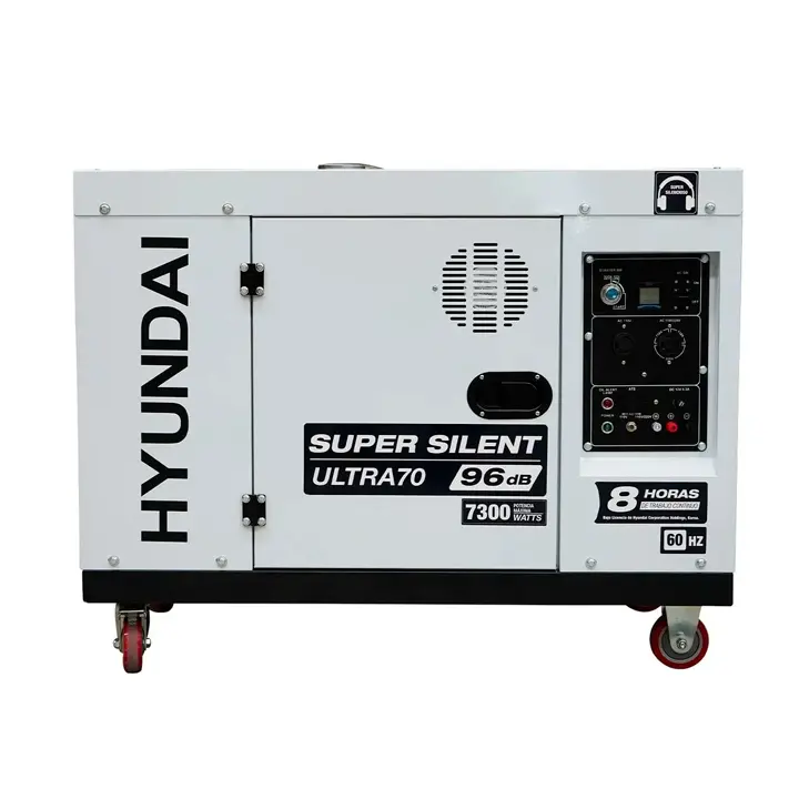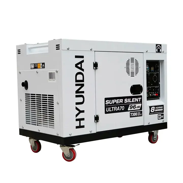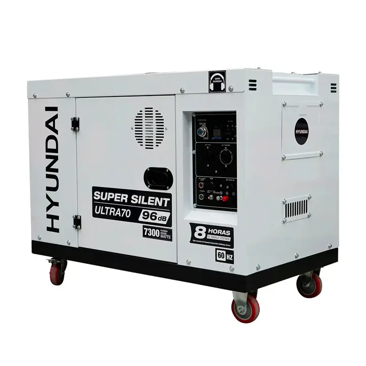 El generador Hyundai ULTRA70 es la solución perfecta para aplicaciones que requieren energía confiable y continua, con un motor diésel silencioso y capacidad de operar hasta 8 horas seguidas, es ideal para entornos donde el ruido debe mantenerse al mínimo.