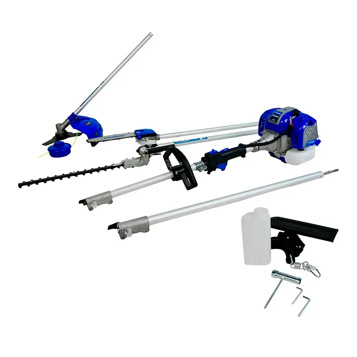 Lo que hace que la HYH3305XT sea especial es su capacidad 5 en 1. Viene con una cuchilla cortasetos, una cuchilla de 3 picos, un cabezal para hilo, una sierra de cadena y una extensión adicional de 75 centímetros, lo que te permite realizar desrame en árboles, cortar setos y podar jardines con facilidad. Esta motosierra se adapta a tus necesidades cambiantes.