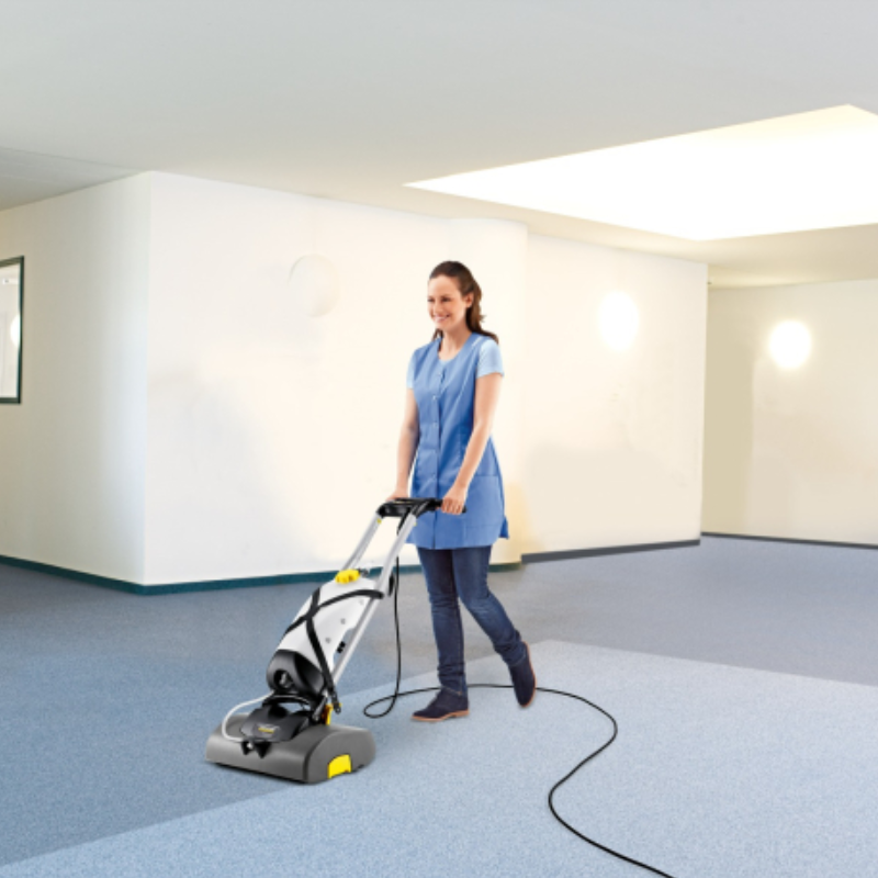Gracias a su diseño compacto y maniobrable, este equipo facilita la limpieza en zonas congestionadas sin sacrificar rendimiento, la Karcher BRS 43/500 C cuenta con cepillos cilíndricos contrarrotativos que levantan y peinan la fibra de la alfombra mientras capturan la suciedad, logrando una apariencia renovada con menos esfuerzo y menor consumo de agua y detergente.