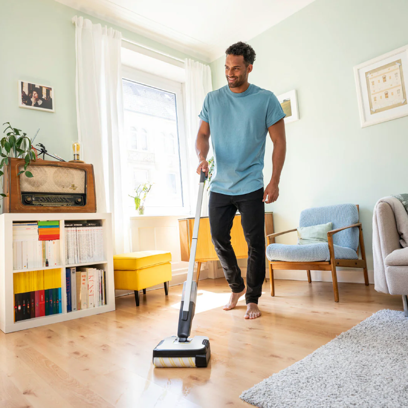 La Karcher FC 2-4 destaca por su facilidad de uso, con conexión y desconexión automática para mayor comodidad, su articulación flexible permite alcanzar áreas difíciles, como debajo de los muebles, sin esfuerzo, ideal para hogares con mascotas o para quienes buscan una limpieza rápida y eficaz sin complicaciones.