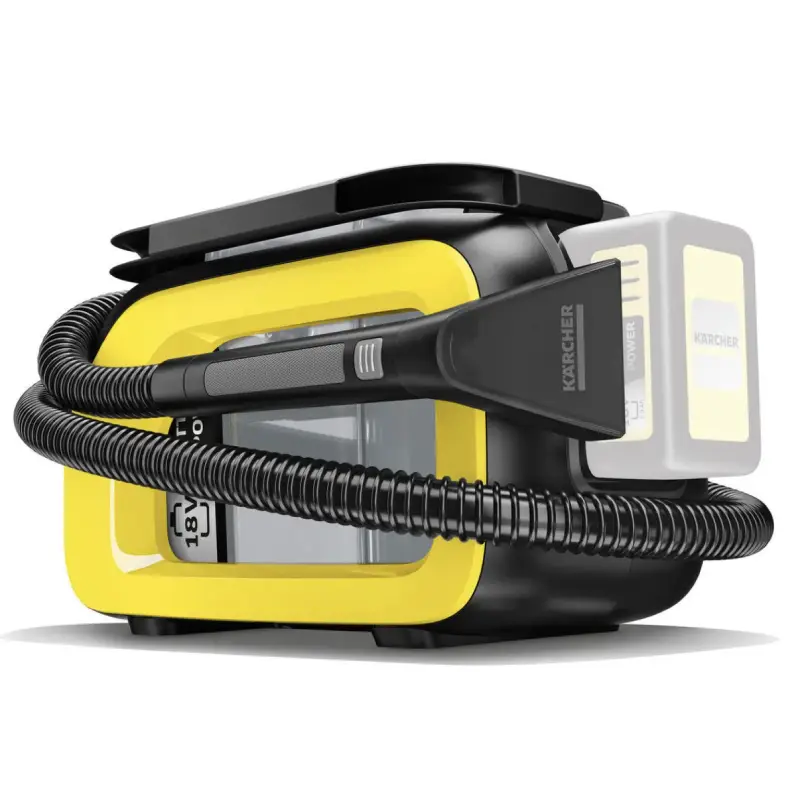 La Aspiradora Karcher SE 3-18 Compact es una poderosa aliada para la limpieza profunda de textiles en interiores de vehículos, tapicería, sillones y alfombras, gracias a su tecnología de inyección y aspiración, el equipo disuelve la suciedad con detergente y la succiona de inmediato, dejando las superficies limpias, secas y frescas en minutos, todo esto con una gran libertad de movimiento al funcionar con batería recargable de 18 V (se vende por separado).
