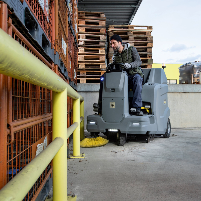 Gracias a su diseño ergonómico, servodirección y regulación de caudal de aspiración, la Karcher KM 100/120 R G proporciona un control preciso y una experiencia de uso cómoda, su construcción  y componentes de alta calidad garantizan durabilidad y rendimiento constante en cualquier entorno. Ideal para almacenes, industrias y espacios exteriores, esta barredora es sinónimo de eficiencia y fiabilidad.