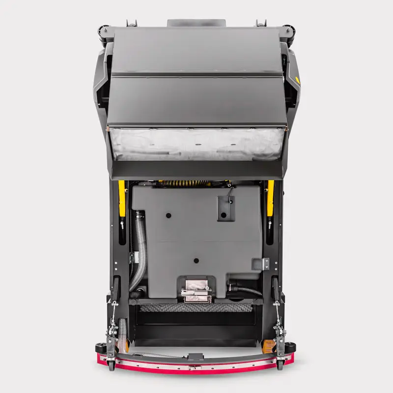 Su diseño, con un bastidor de acero resistente a la corrosión, la hace perfecta para entornos exigentes, ofreciendo una larga vida útil, su sistema de vaciado en alto facilita la eliminación de residuos sin contacto con la suciedad, mejorando la higiene del operario y reduciendo esfuerzos innecesarios, además, con una capacidad de trabajo de hasta 14,000 m²/h, proporciona un alto rendimiento en cualquier tarea de limpieza profesional.