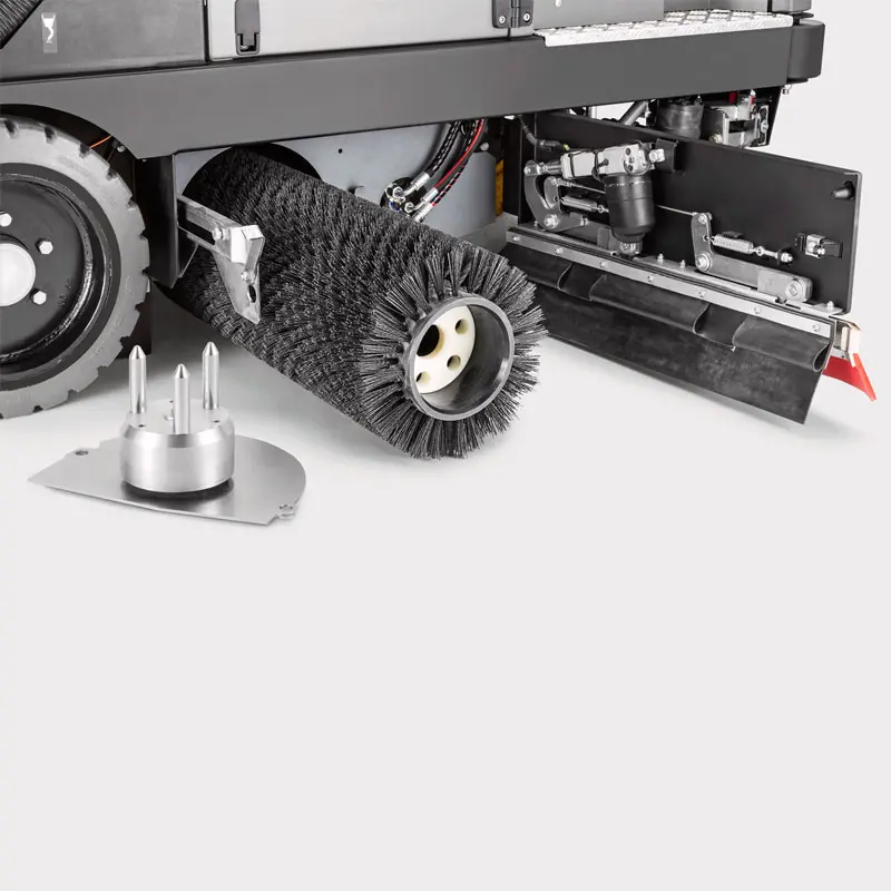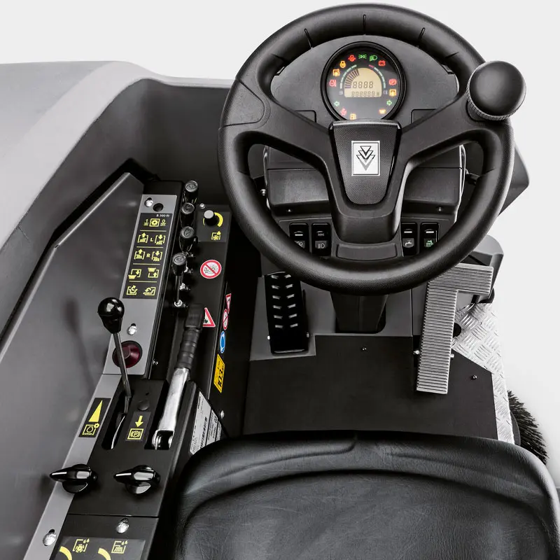 Equipada con cepillos cilíndricos extragrandes y un sistema de aspiración avanzado, garantiza una limpieza profunda sin necesidad de barrido previo, su estructura  con bastidor de acero permite soportar condiciones exigentes, mientras que la ergonomía de su diseño facilita la maniobrabilidad y la visibilidad del operador, su sistema de vaciado en alto permite la eliminación rápida y sin contacto con los residuos, optimizando la higiene y reduciendo la fatiga del usuario.