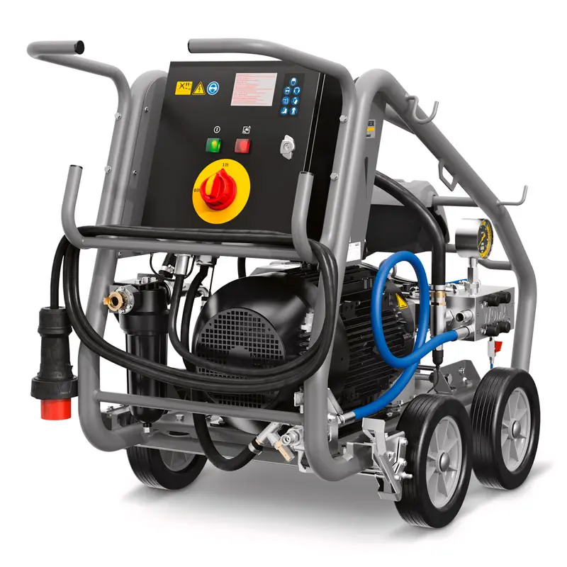 Equipada con una bomba industrial de alta presión WOMA, esta hidrolavadora proporciona un alto rendimiento volumétrico con un consumo de agua reducido, optimizando los recursos sin sacrificar potencia, su motor eléctrico de 30 kW ofrece una operación eficiente y confiable, asegurando largas jornadas de trabajo sin interrupciones, su tecnología avanzada permite un control preciso del caudal y la presión para adaptarse a distintas superficies y necesidades de limpieza.