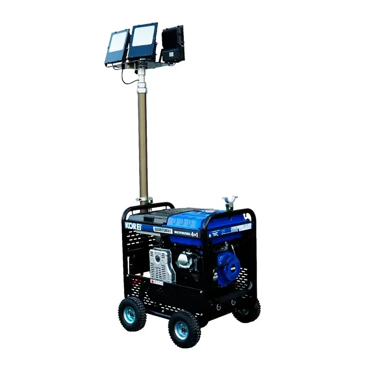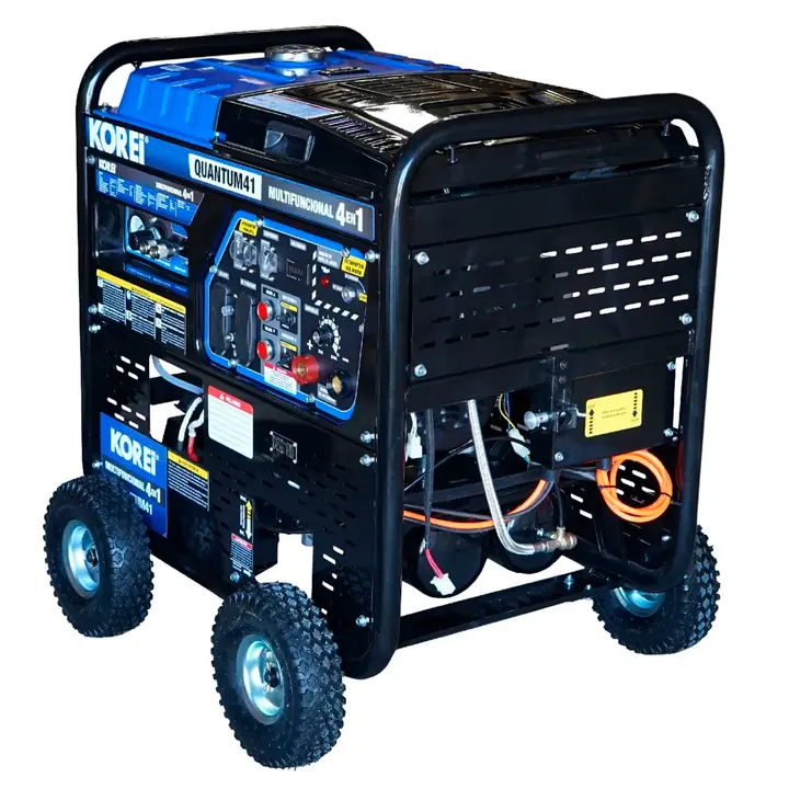 El Generador Profesional 4 en 1 QUANTUM41 de Korei Construction combina funcionalidad y potencia en un solo equipo, ofreciendo generador, soldadora, compresor de aire y torre de luz, diseñado para satisfacer las demandas de proyectos industriales y de construcción, este equipo multifuncional es ideal para trabajos que requieren energía constante, soldadura precisa, iluminación eficiente y aire comprimido.