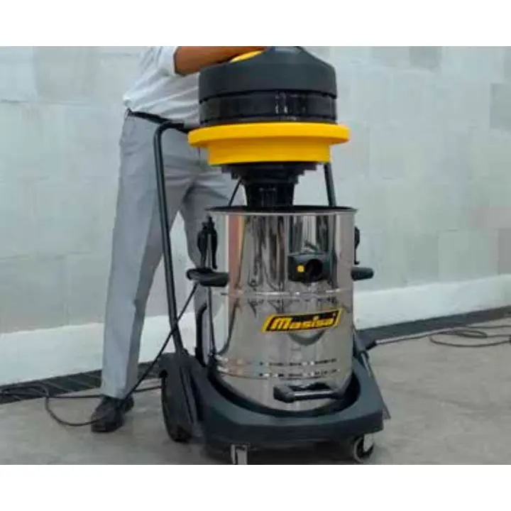 Diseñada para ser práctica y eficiente, es perfecta para hoteles, restaurantes, oficinas y hogares que necesitan una limpieza a fondo tanto en seco como en mojado, su construcción en acero inoxidable de 60 litros, combinada con su carro basculante, facilita el vaciado y asegura durabilidad para un uso continuo y exigente.