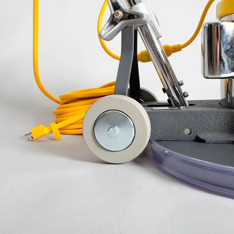 El posicionador de altura, fabricado en acero con recubrimiento anti-derrapante, asegura un control total del equipo, permitiendo ajustar la pulidora a la altura perfecta para cada tarea. Esto se traduce en mayor comodidad y menor esfuerzo físico, permitiendo trabajar por períodos prolongados sin comprometer la calidad del resultado.