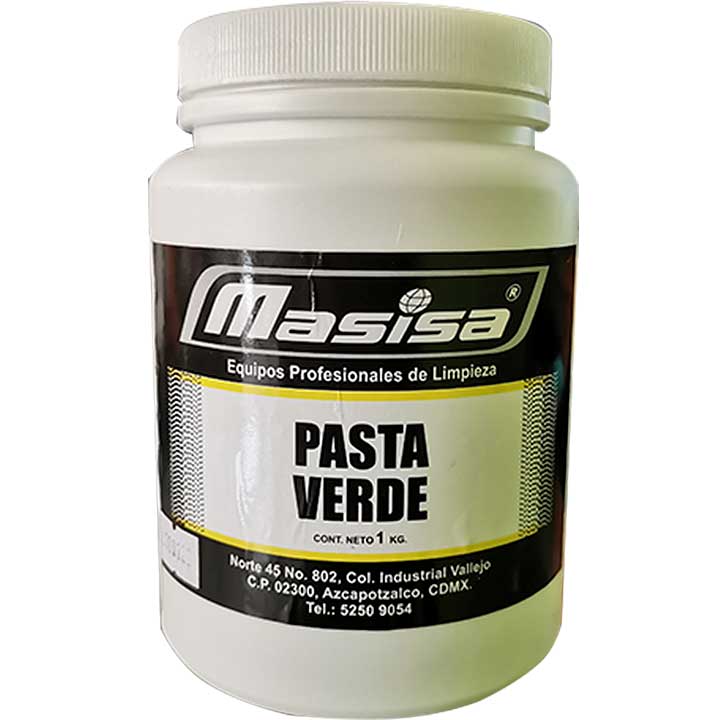 La Pasta Verde Masisa, por su mayor acción abrasiva elimina de manera más rápida y económica, las marcas y rayones dejando los pisos listos, para recibir el tratamiento de cristalización y abrillantado de la Pasta Blanca Masisa.