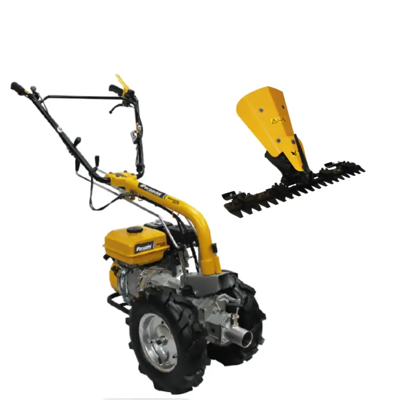 La segadora, fabricada con materiales de calidad italiana, ofrece un corte preciso con alturas regulables de 2 a 6 cm, lo que permite mantener el terreno limpio y nivelado según las necesidades de cada cultivo, las llantas de caucho del motocultor y el maneral ajustable en siete posiciones aseguran un manejo ergonómico y estable, adaptándose a distintos tipos de suelo.