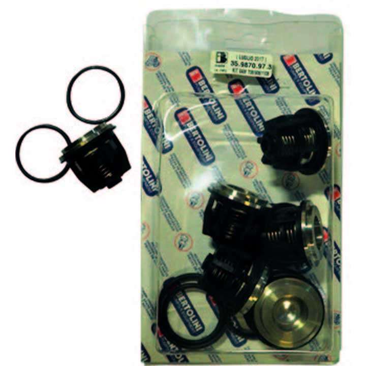 Kit de válvulas check para refaccionar diafragmas en bombas de diafragma marca Bertolini, 4 piezas por empaque.