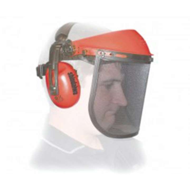 Shindaiwa – Casreta de seguridad con protector auditivo, visor de malla de acero.