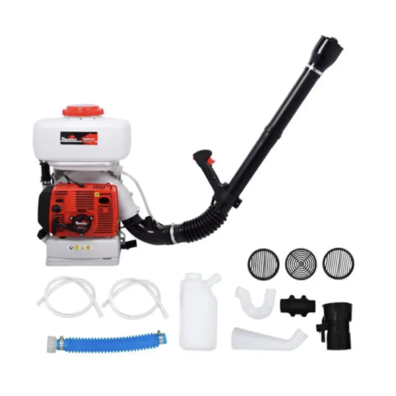 | Incluye | 1 Cadena antiestática 1 Embudo 1 Juego de herramientas 1 Kit ULV 1 Manguera difusible polvo 1 Mezclador de combustible 1 Tobera difusor 1 Tubo flexible 2 Mangueras líquidos 2 Tubos de descarga 3 Difusores 4 Abrazaderas tipo resorte 1 Abrazadera plástica |