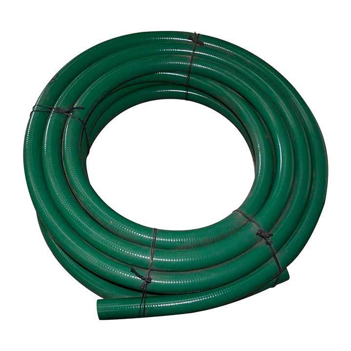 Manguera Verde Succión-1PM ligera y flexible fabricada en PVC plastificado, reforzada con una espiral de PVC rígido antichoque que combina la flexibilidad de una manguera con la robustez de una tubería rígida. Ofrece excelente resistencia tanto en aplicaciones de aspiración como de impulsión, además de ser altamente resistente a los agentes atmosféricos y a una amplia gama de sustancias químicas.