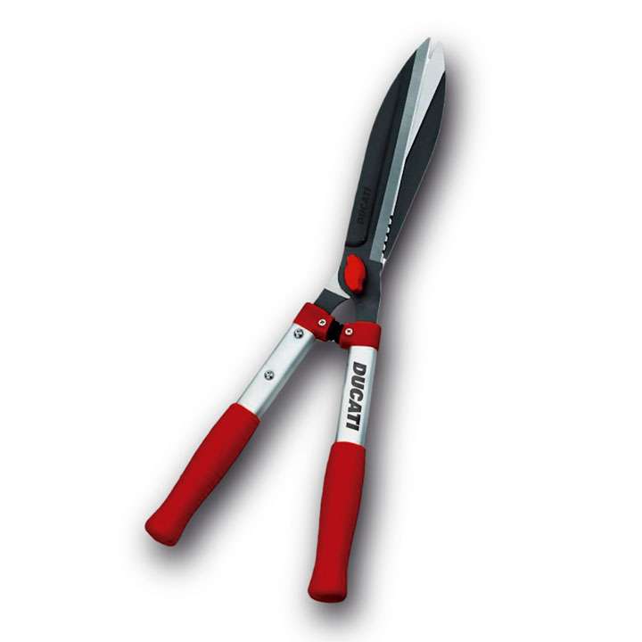Tijera Cortasetos de Aluminio con Hoja y Contrahoja de acero laminado. Su cuchilla dentada brinda un sistema antideslizamiento de ramas.