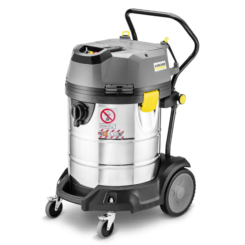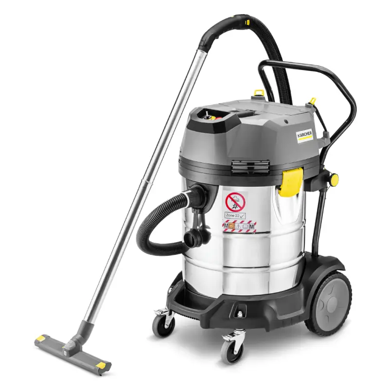 La Aspiradora Karcher NT 75/1 Me Ec M Z22 está diseñada para trabajos exigentes en entornos industriales donde se requiere un alto nivel de seguridad, potencia y eficiencia, gracias a su motor EC sin escobillas, garantiza un funcionamiento continuo y duradero, ideal para zonas con riesgo de explosión tipo ATEX Zona 22, su sistema antiestático y materiales conductores previenen acumulaciones de energía, ofreciendo protección total durante su uso.