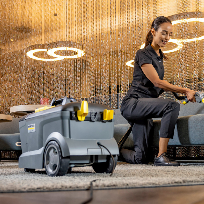 La Lava-aspiradora Karcher PUZZI 10/1 es una solución eficiente y versátil para la limpieza profunda y de mantenimiento de alfombras, moquetas y tapicerías en espacios pequeños y medianos, gracias a su tecnología de pulverización y aspiración combinadas, permite eliminar la suciedad incrustada sin dañar las fibras, asegurando un secado rápido y una limpieza óptima.