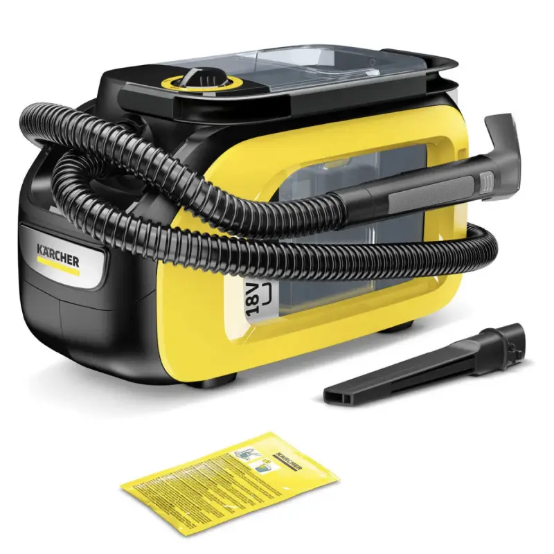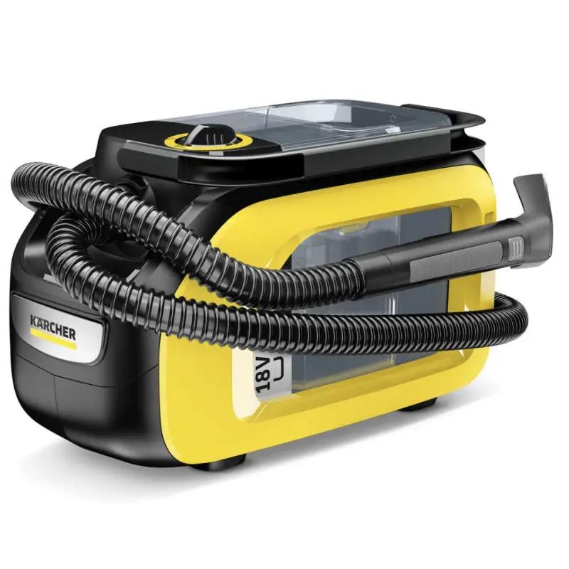 La Aspiradora Karcher SE 3-18 Compact es una poderosa aliada para la limpieza profunda de textiles en interiores de vehículos, tapicería, sillones y alfombras, gracias a su tecnología de inyección y aspiración, el equipo disuelve la suciedad con detergente y la succiona de inmediato, dejando las superficies limpias, secas y frescas en minutos, todo esto con una gran libertad de movimiento al funcionar con batería recargable de 18 V (se vende por separado).