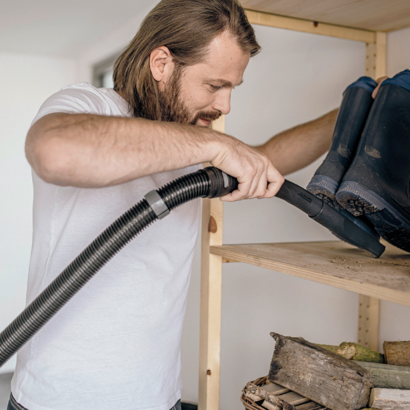 Este equipo destaca por su diseño ergonómico y funcional, su sistema de almacenamiento inteligente permite guardar accesorios y cables de manera ordenada en el cabezal del equipo, mientras que la práctica asa de transporte plegable facilita su manejo, además, su innovador filtro de cartucho permite aspirar tanto en seco como en húmedo sin necesidad de cambiarlo, optimizando el tiempo de trabajo y garantizando una limpieza continua y eficiente.