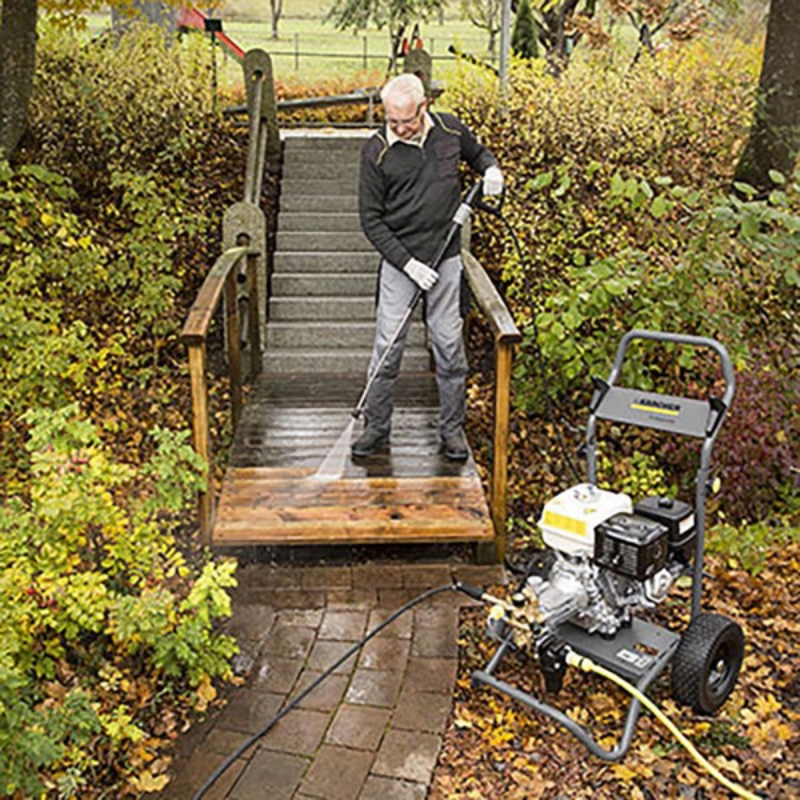 Su diseño con bastidor tubular recubierto con pintura en polvo ofrece resistencia y durabilidad, protegiendo el equipo de impactos y condiciones adversas, su presión de trabajo ajustable de hasta 200 bar y su caudal de agua de hasta 750 l/h garantizan resultados de limpieza óptimos con la flexibilidad que los profesionales necesitan.