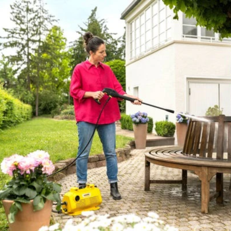 La Hidrolavadora Karcher K 2 Horizontal Basic es la solución ideal para la limpieza de exteriores, eliminando eficazmente suciedad, musgo y residuos en escaleras, terrazas y muebles de jardín, su diseño compacto y ligero facilita su almacenamiento y transporte, mientras que su potente sistema de alta presión garantiza resultados óptimos con un menor consumo de agua en comparación con métodos tradicionales.