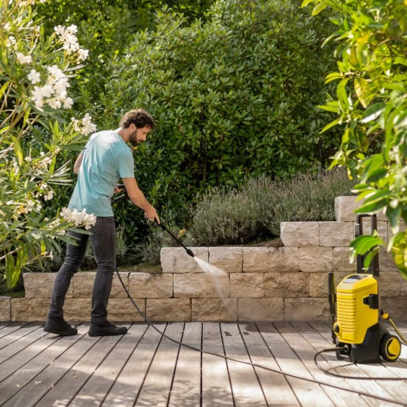 Además, su diseño compacto permite un almacenamiento ordenado de la manguera, la lanza pulverizadora y el cable de conexión directamente en el equipo, su uso con detergentes es práctico y eficiente gracias a la manguera de aspiración integrada, maximizando la limpieza y prolongando el efecto protector en cualquier superficie.