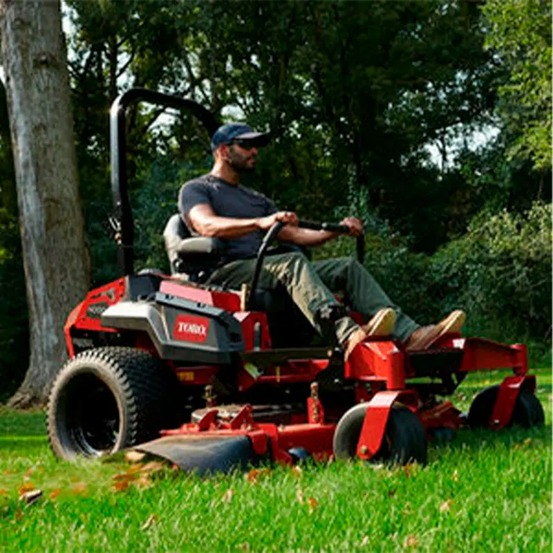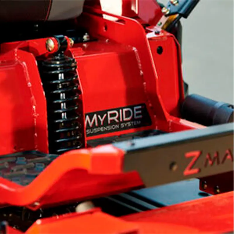El diseño avanzado de su plataforma de corte TURBO FORCE®, fabricada en acero calibre 7, garantiza durabilidad y precisión en cada pasada, logrando cortes finos y profesionales en césped de diferentes alturas, desde 3.8 cm hasta 14 cm, además, el sistema de suspensión MyRIDE proporciona un confort inigualable, reduciendo la fatiga del operador durante largas jornadas de trabajo, incluso en terrenos irregulares.